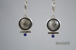 Aprašymas: Sidabras, oksidas, granatas arba lazūritas (lapis lazuli). Auskarų dydis: 15x22 mm. Kūryba ir atlikimas: Darata Surdokaitė Pavyzdžiai