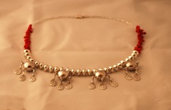Tai XVIII-XIX a. lietuvių tautinio kostiumo papuošalas. Pagamintas pagal autentišką papuošalą. Sidabras, natūralus koralas, biseris. Pavyzdys.